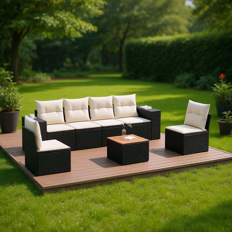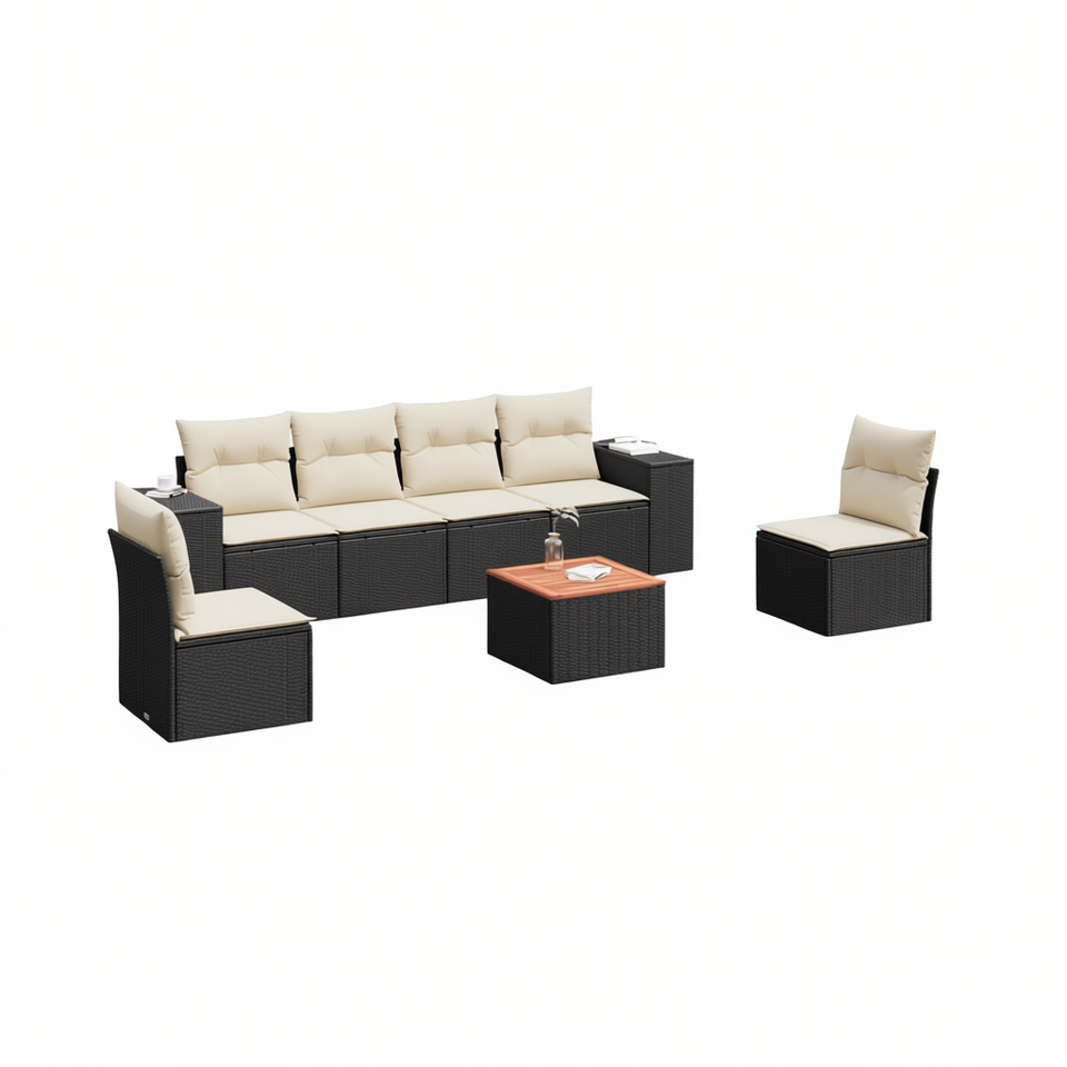 Conjunto de Sofás Modulares de Jardín en Poliratán Negro, Muebles Elegantes para Exteriores con Cojines de Espuma de Alta Densidad