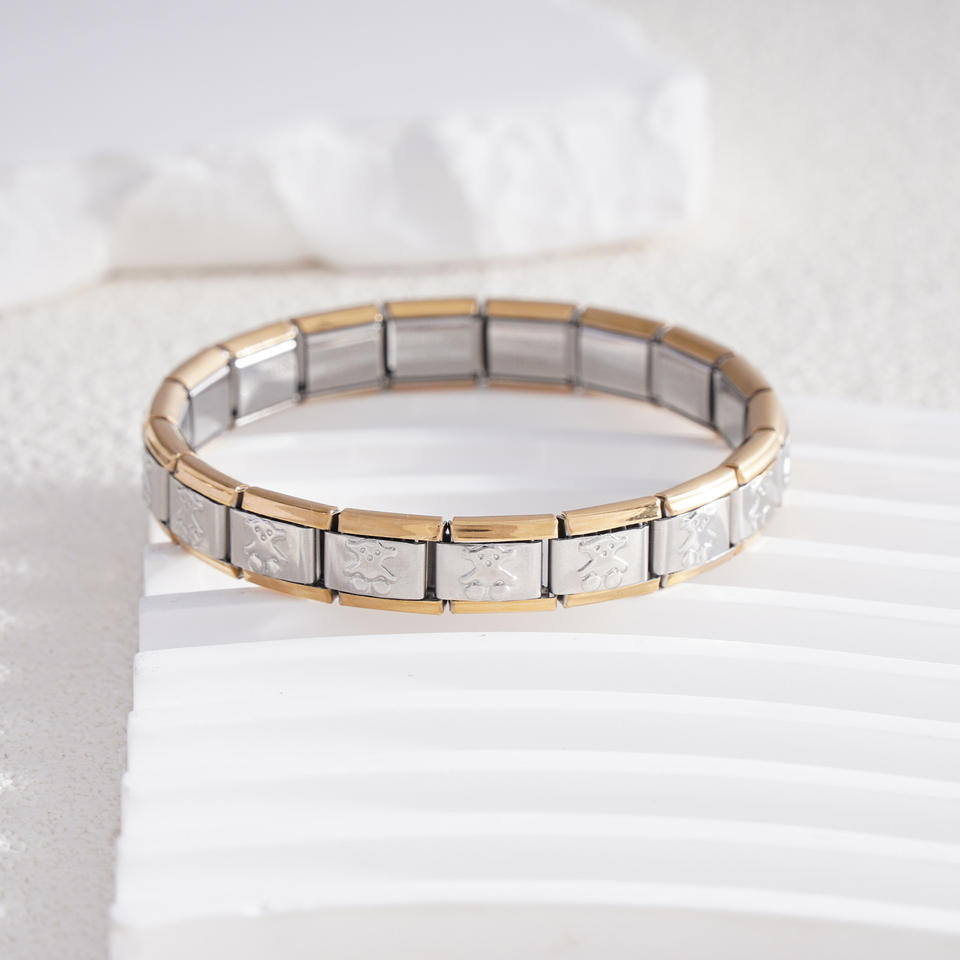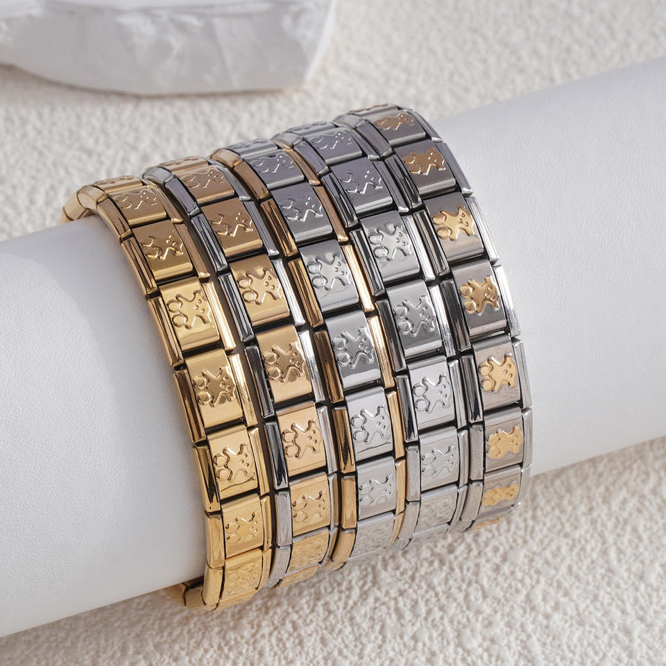 Brazalete Modular de Acero Inoxidable Chapado en Oro, Elástico, con Diseño de Dibujos Animados, Joyería Unisex