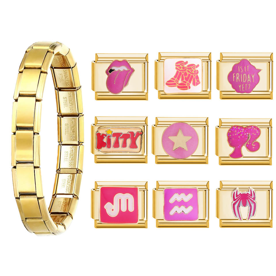 Pulsera Modular con Dijes Intercambiables de Acero Inoxidable en Tono Dorado, Unisex, para Uso Diario, para Mujeres y Hombres