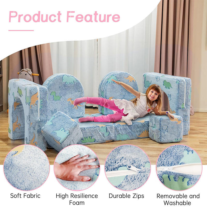 Sofá Modular Infantil de 4 Plazas con Diseño de Dinosaurios que Brillan en la Oscuridad, Sofá Combinado para Niños Pequeños para Interiores