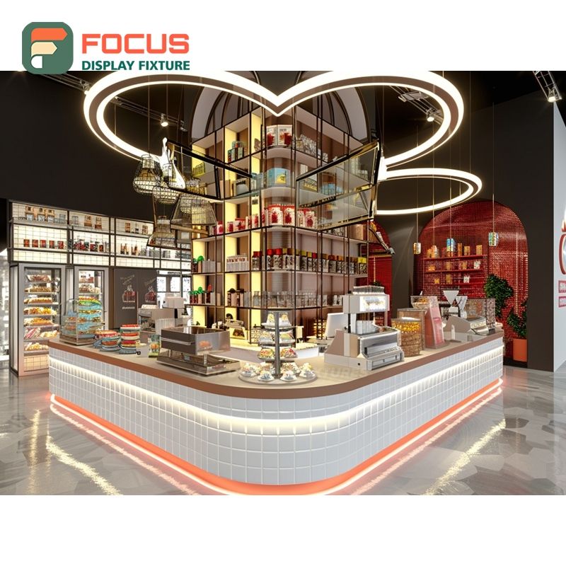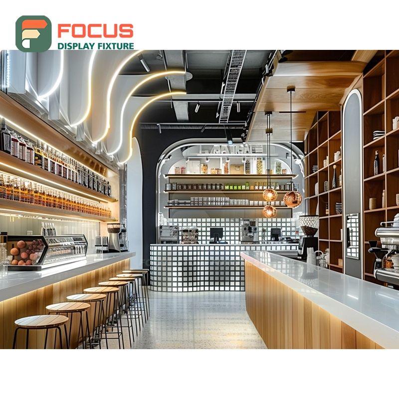 Mueble Modular para Exhibición de Café, Acabado en Madera Laminada, Área de Exhibición de Accesorios, Mueble para Cafetería