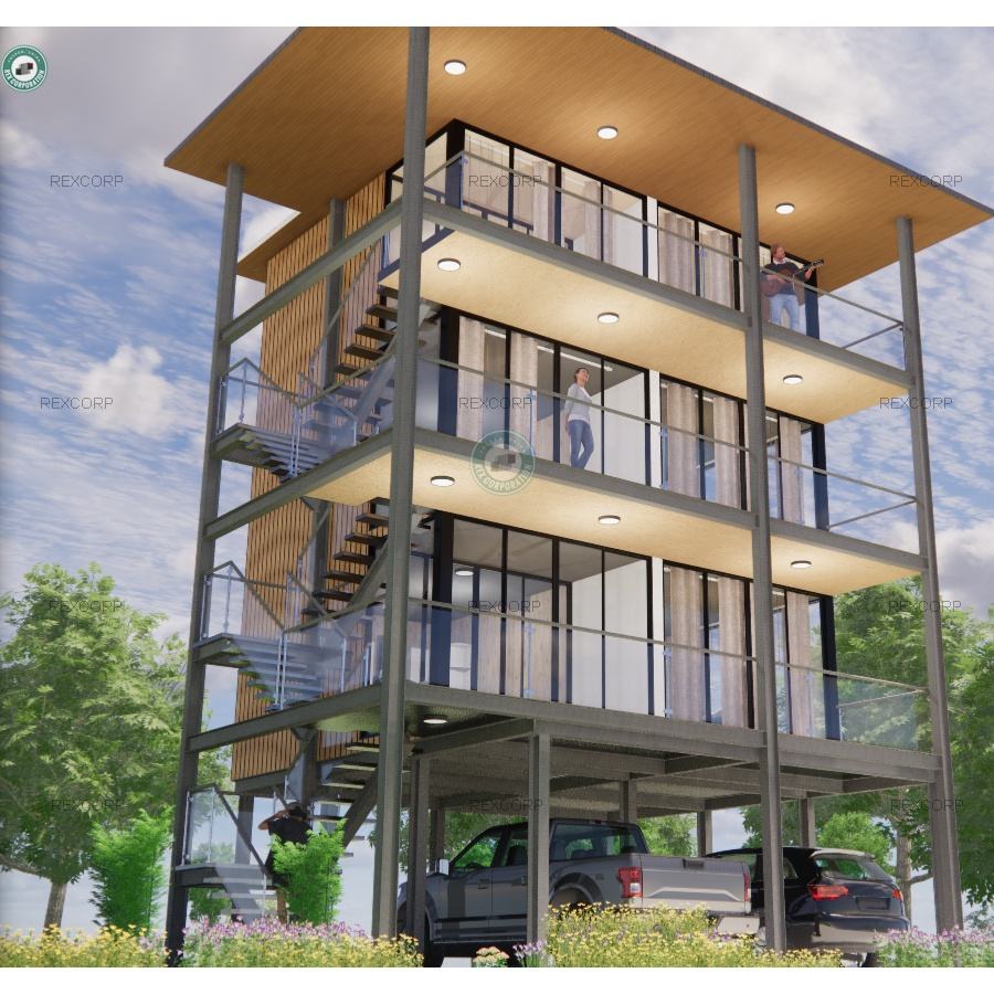 Hotel Modular en Contenedores con Estacionamiento en Alquiler, Hotel Resort de 3 Pisos con Vista al Mar, Habitaciones Decoradas con Estilo del Sudeste Asiático