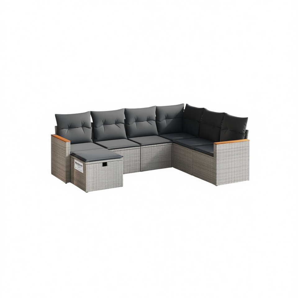 Conjunto de Sofá Modular de Jardín de Ratán PE Gris, 6 Plazas, Muebles de Exterior, Diseño Contemporáneo