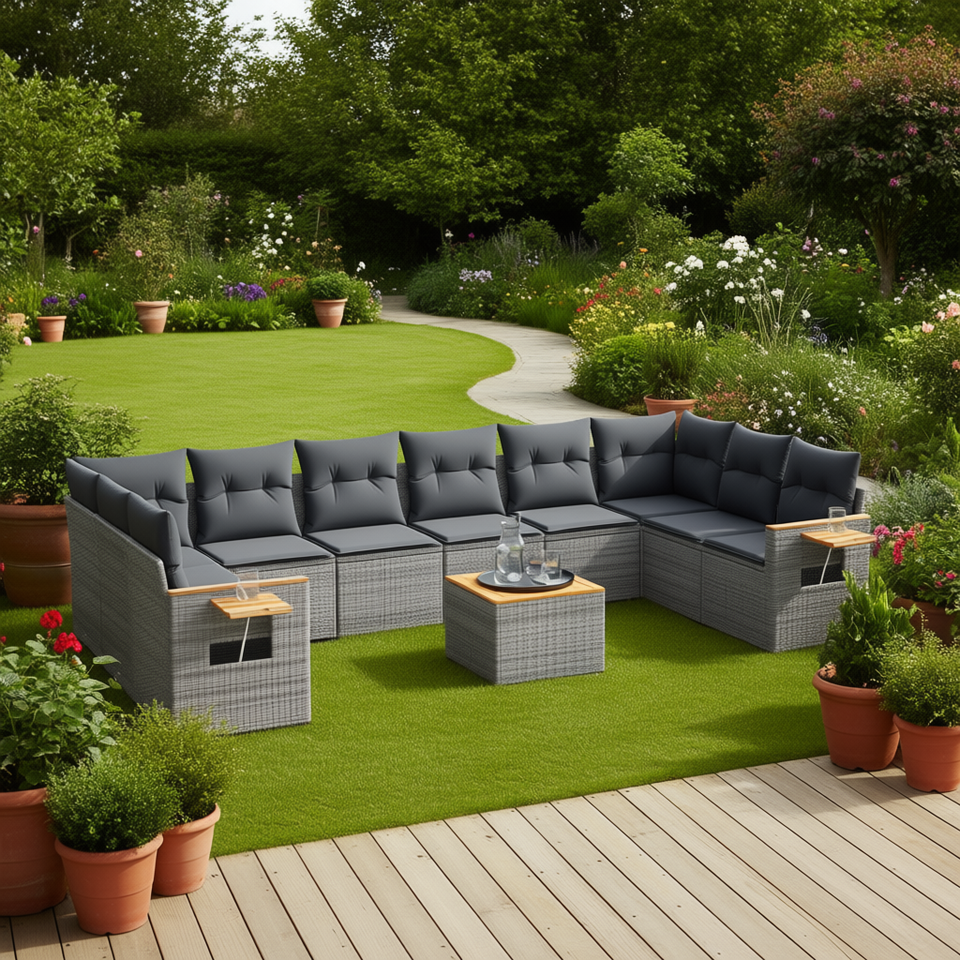 Conjunto de Sofás Modulares de Ratán PE Gris para Jardín, 8 Plazas, Muebles de Exterior, Diseño Contemporáneo