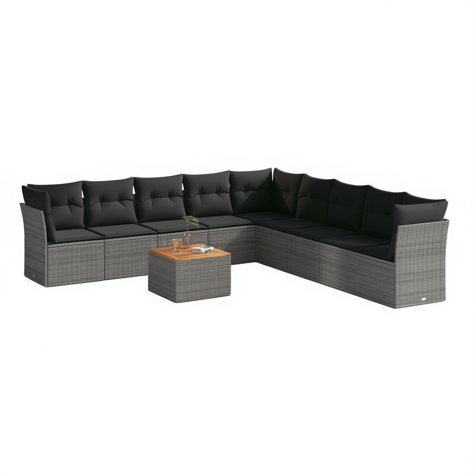 Conjunto de Sofás Modulares de Ratán Gris para Jardín, Colección de Muebles de Exterior, 10 Plazas, Diseño Contemporáneo