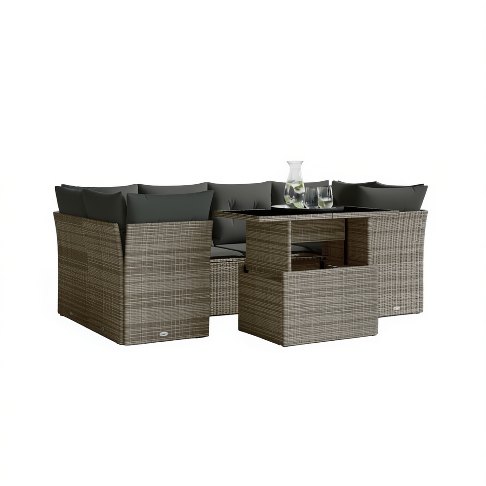Conjunto de Sofás Modulares de Jardín en Poliratán Gris, Muebles de Exterior de Alta Calidad con Cojines de Espuma de Alta Densidad