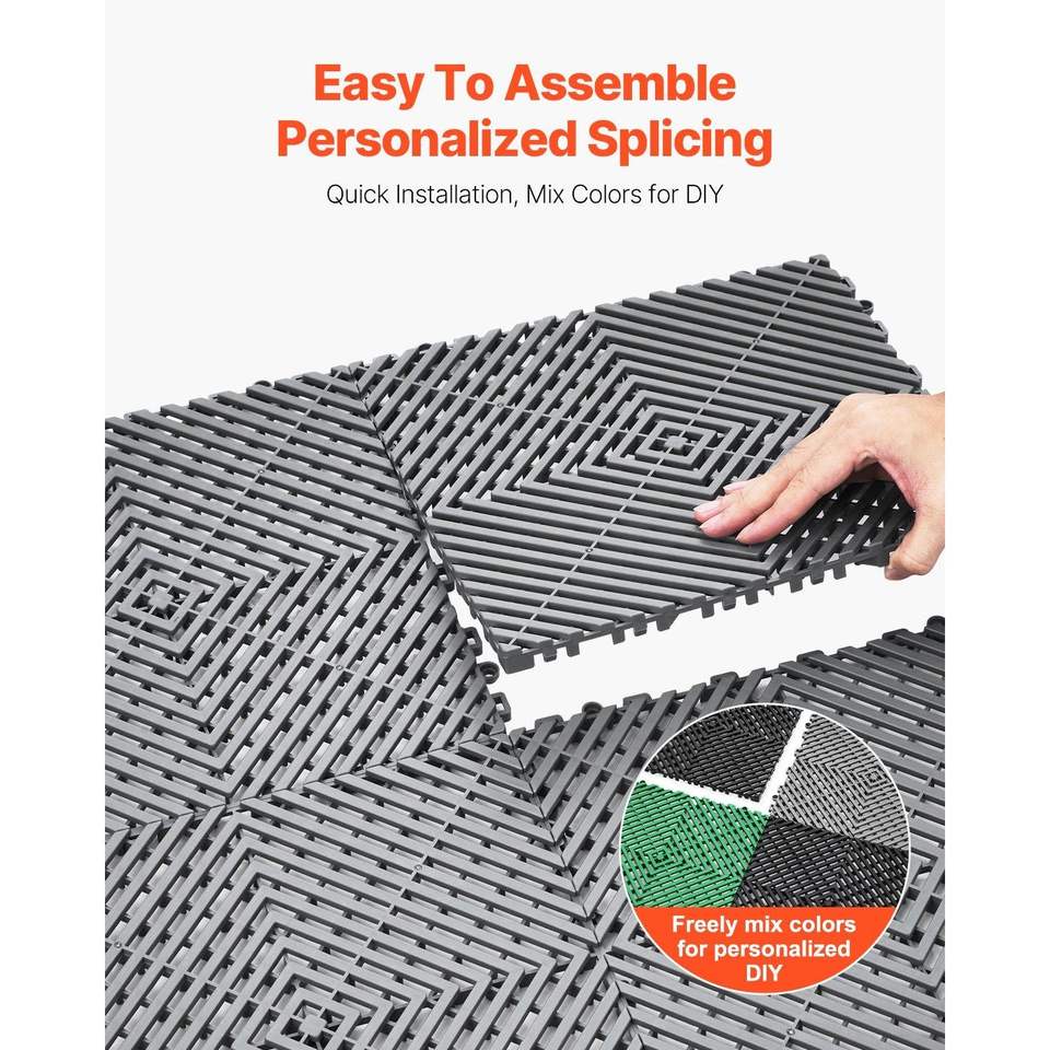 Alfombrillas de Drenaje Modulares Encajables de PP Gris Antideslizantes 12x12, 24 Piezas, Tapetes de Drenaje de Plástico Encajables para Suelo