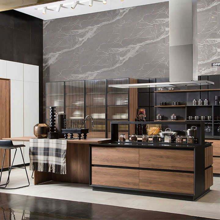 Muebles de Cocina Modulares con Encimeras, Muebles de Isla de Madera de Melamina para Cocinas
