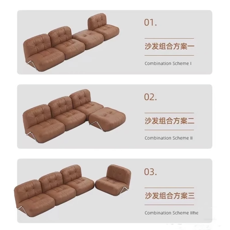 Sofá Modular de Cuero, Forma Recta Semicircular, Relleno de Espuma, Patrón Artístico, Muebles para Sala de Estar