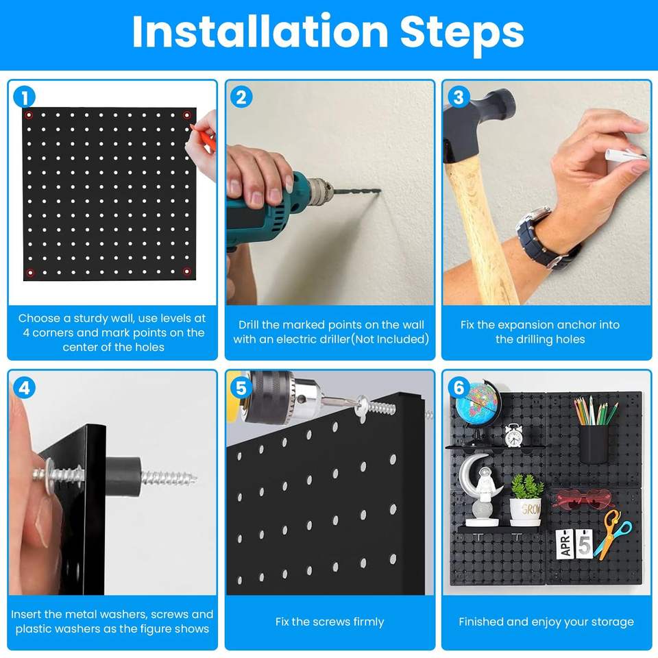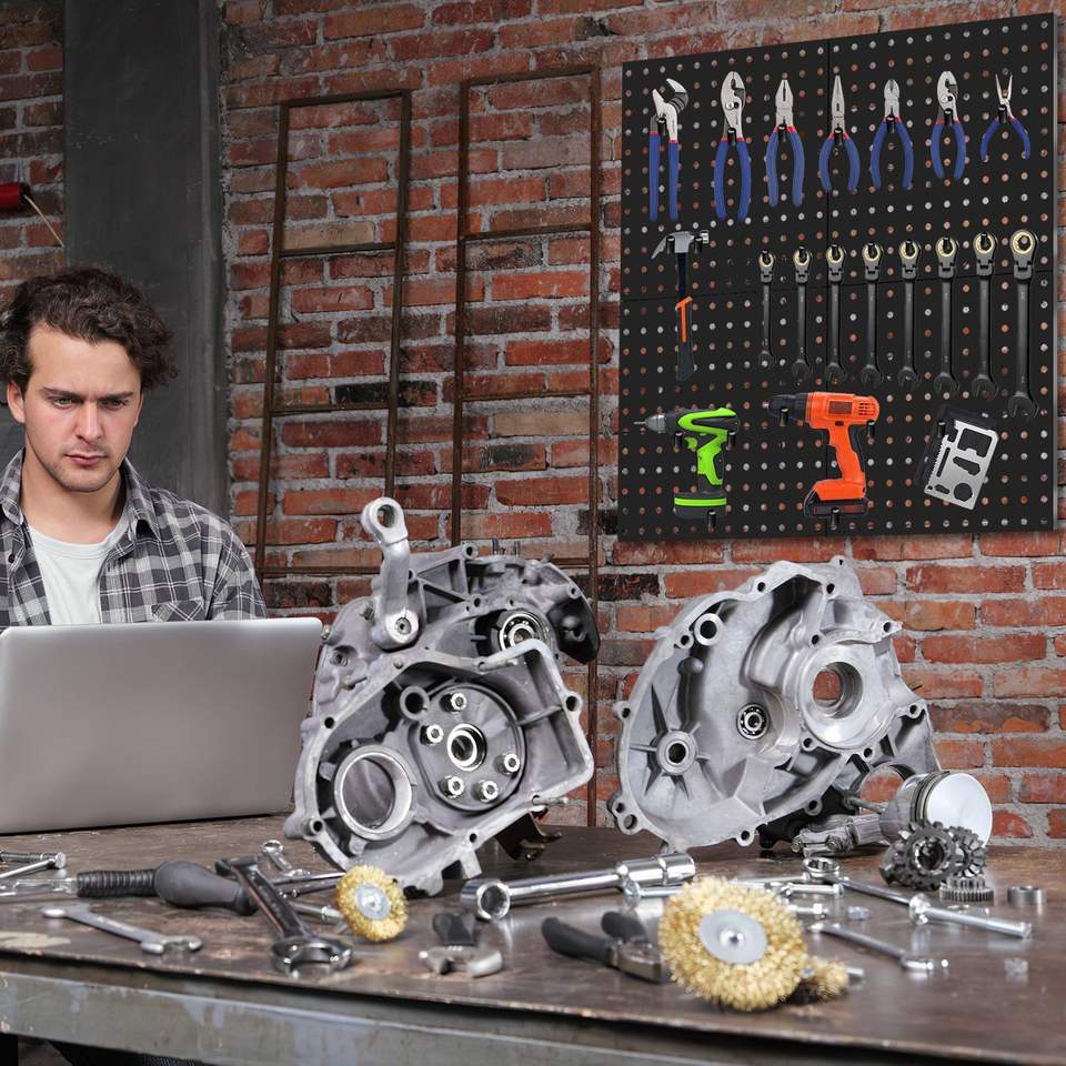 Sistema de Almacenamiento Modular de Metal con Panel Perforado, Organizador de Herramientas para Garaje Montado en la Pared, Compatible con Banco de Trabajo, Organizador de Herramientas para Taller