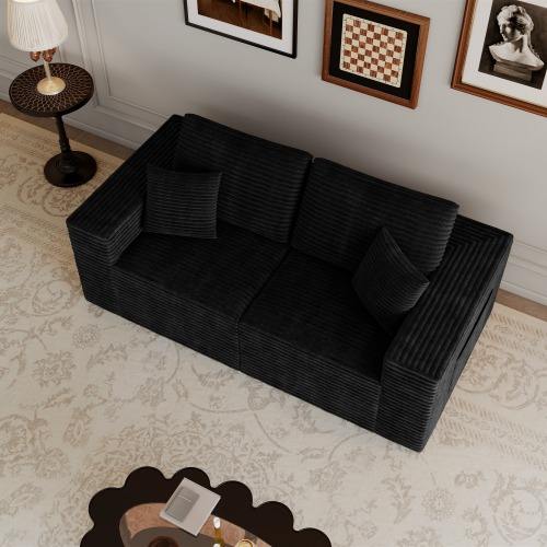 Sofá Seccional Modular Moderno de 2 Piezas, 70.87 Pulgadas, Tapizado en Pana Negra, Sofá Cama Comprimido, Sin Ensamblaje, Sofá de Dos Plazas de Espuma para Sala de Estar