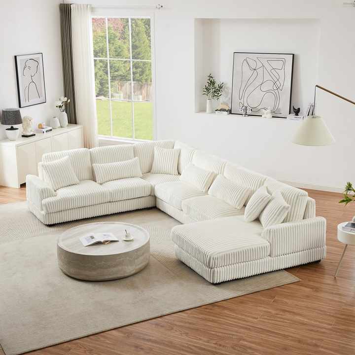 Conjunto de Sofá Seccional Modular en Forma de U Extra Grande con Chaise Longue y Sofá Cama, Diseño Moderno, Tapicería de Pana