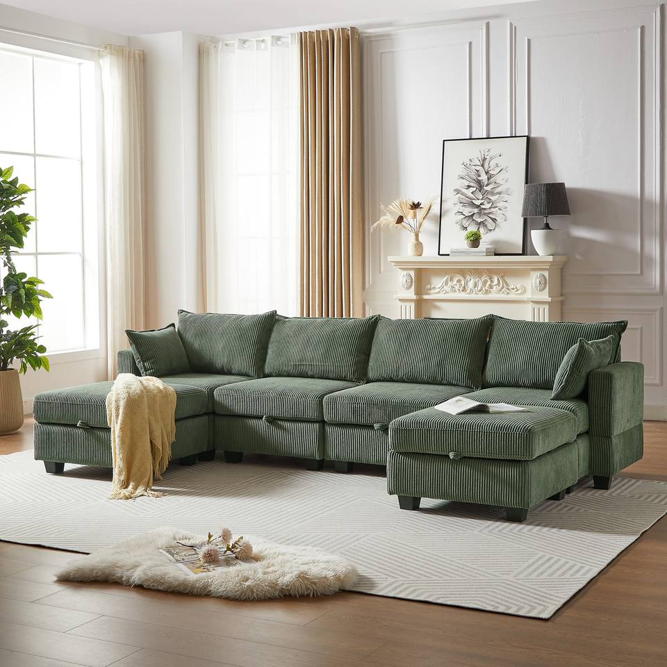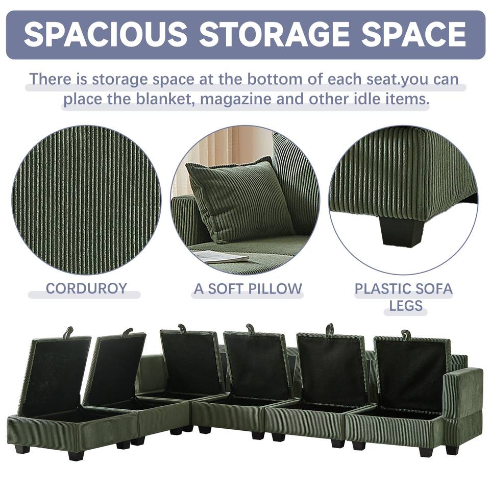 Juego de Sofás Modulares de Corduroy - Diseño Moderno, Sofá Convertible de 6 Plazas con Chaise Longue y Otomana con Almacenamiento para Sala de Estar