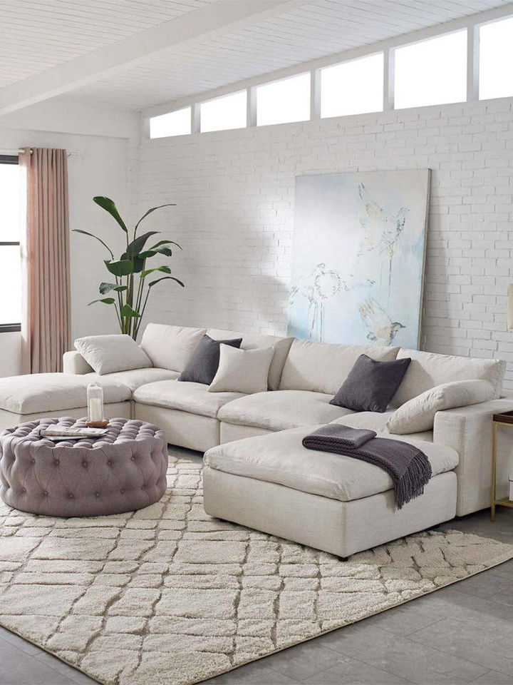 Sofá Seccional Modular para Sala de Estar, Muebles Franceses, Estilo Nórdico Moderno, Color Blanco, Conjuntos de Sofás Seccionales Modulares
