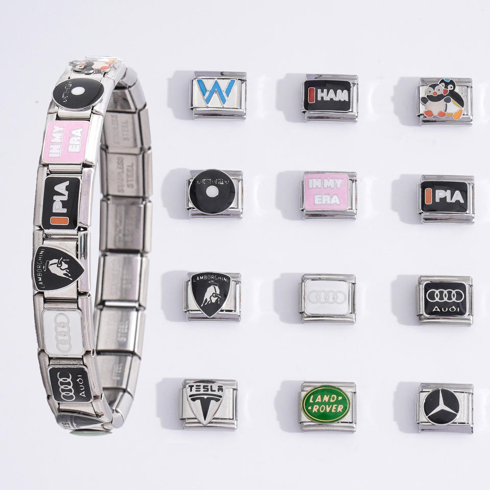Pulsera Modular de Acero Inoxidable con Emblema de Coche, Joyería Unisex de Moda DIY, Cadena con Dijes Intercambiables