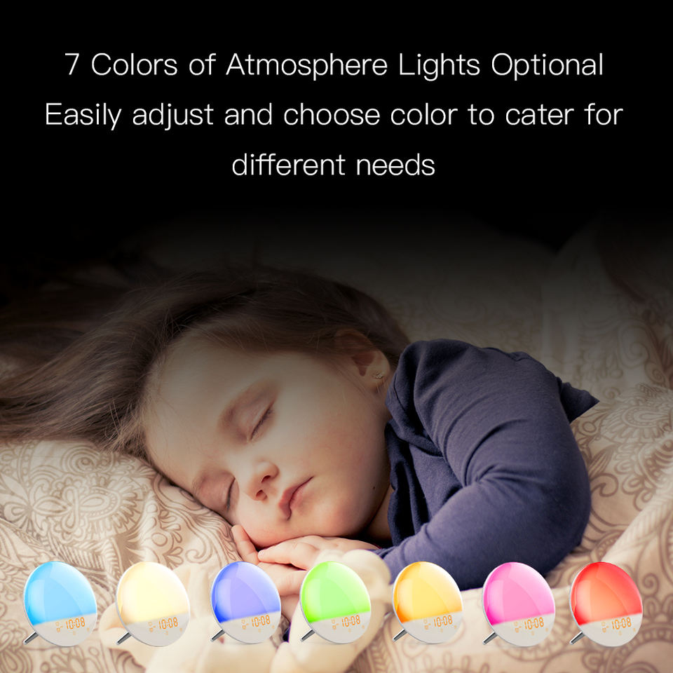 Moes WiFi Luz de despertador inteligente de segunda generación con 7 colores, simulación de amanecer y atardecer, 4 alarmas, Radio FM, repetición