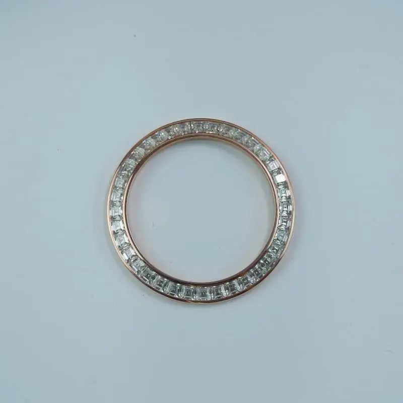Bisel de Reloj con Diamantes Moissanite, Color Oro Rosa, Acero Inoxidable de Lujo, Bisel de Repuesto Personalizado para Personalización de Relojes