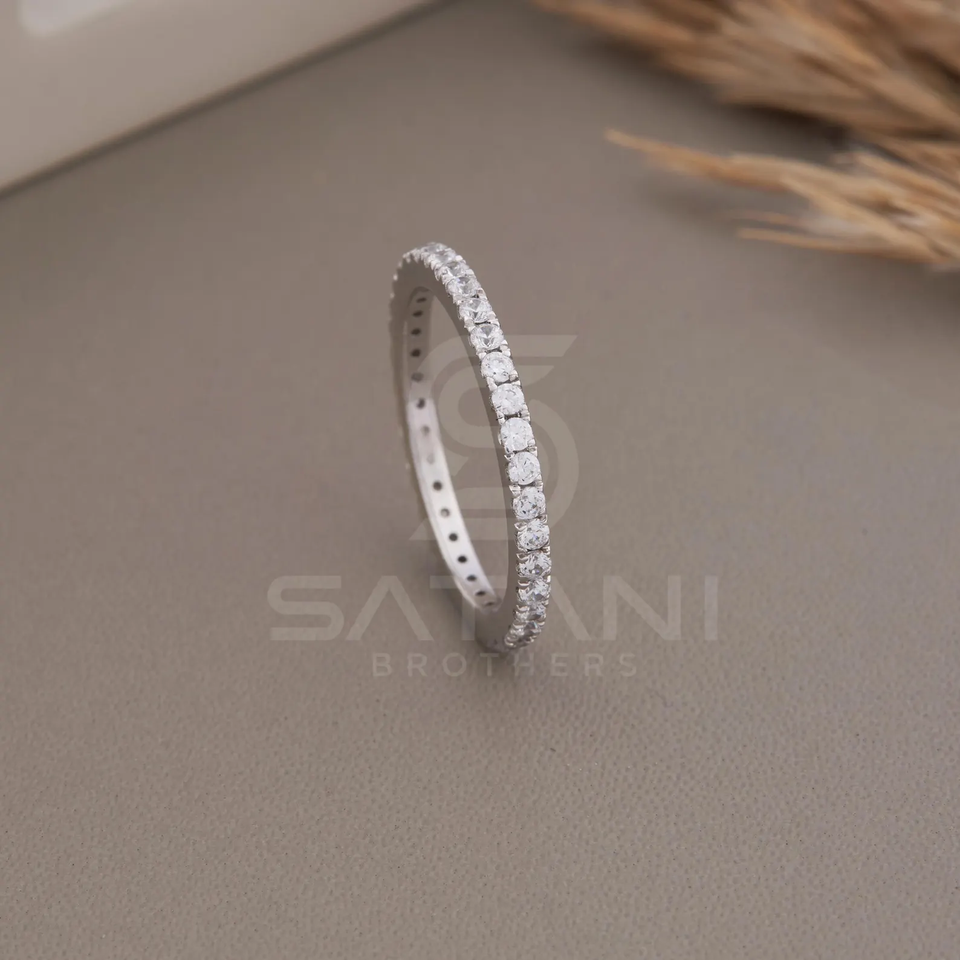 Anillo de Eternidad de Moissanita, Anillo de Aniversario de Bodas de Oro Macizo, Impresionante Anillo de Compromiso Brillante para Mujer