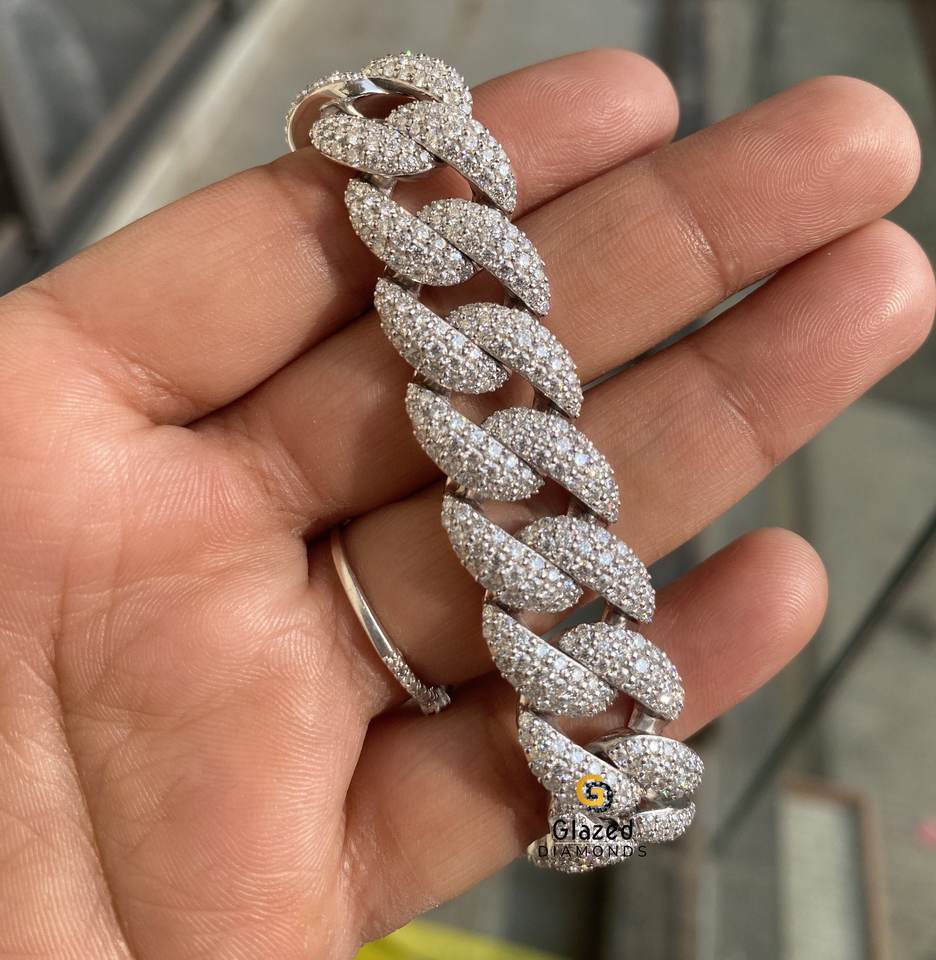 Pulsera de eslabones cubanos de plata de ley 925 con moissanita de corte redondo, color VVs, estilo hip hop, ideal para regalo o fiesta.