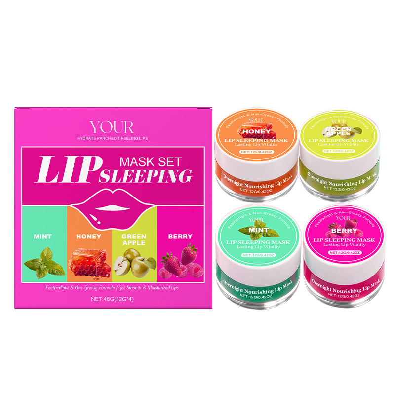 Set de Mascarillas Labiales Hidratantes para Dormir, 4 Sabores, Cuidado Hidratante, Reparación Nocturna, Tratamiento Voluminizador, Marca Privada