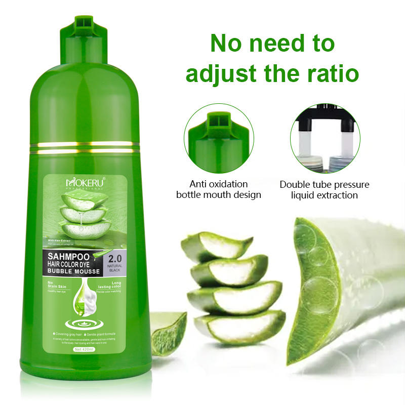 Mokeru Venta al por mayor Speedy Dye No Tóxico No Estimulación Aloe Vera Extracto Color Champú