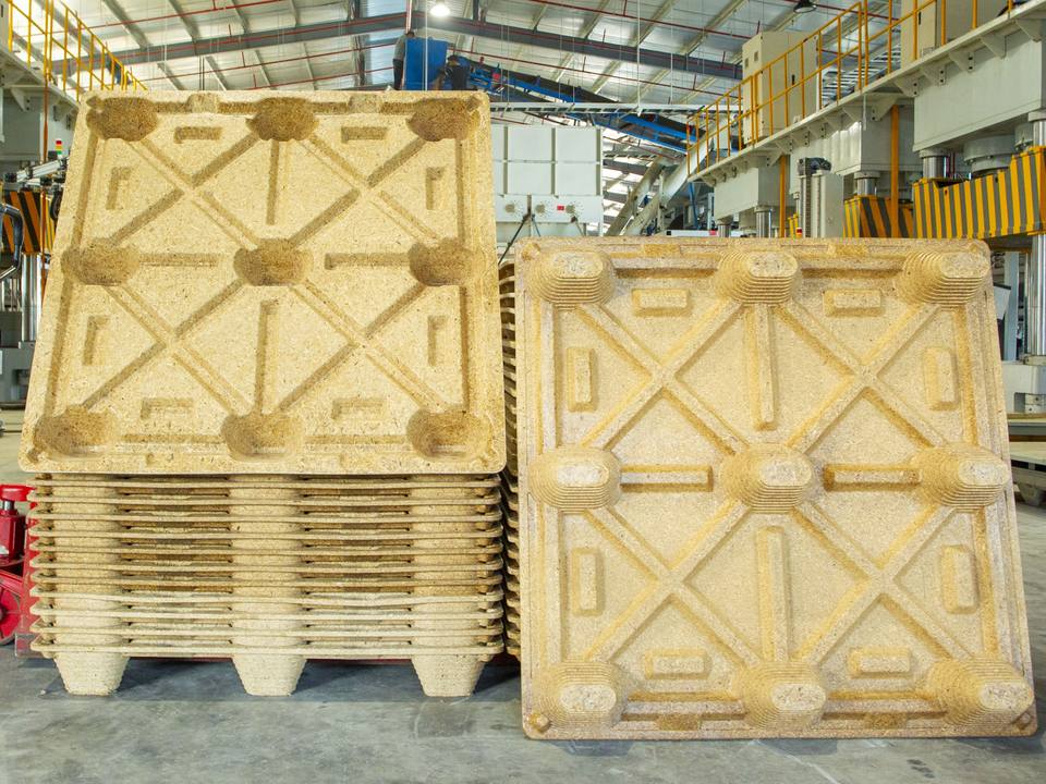 Palet de Madera Prensada Moldeada para Transporte de Carga Industrial, 4 Entradas, 1200x800x130mm, Plataforma Única, Ligero, Apilable, Madera Reciclada
