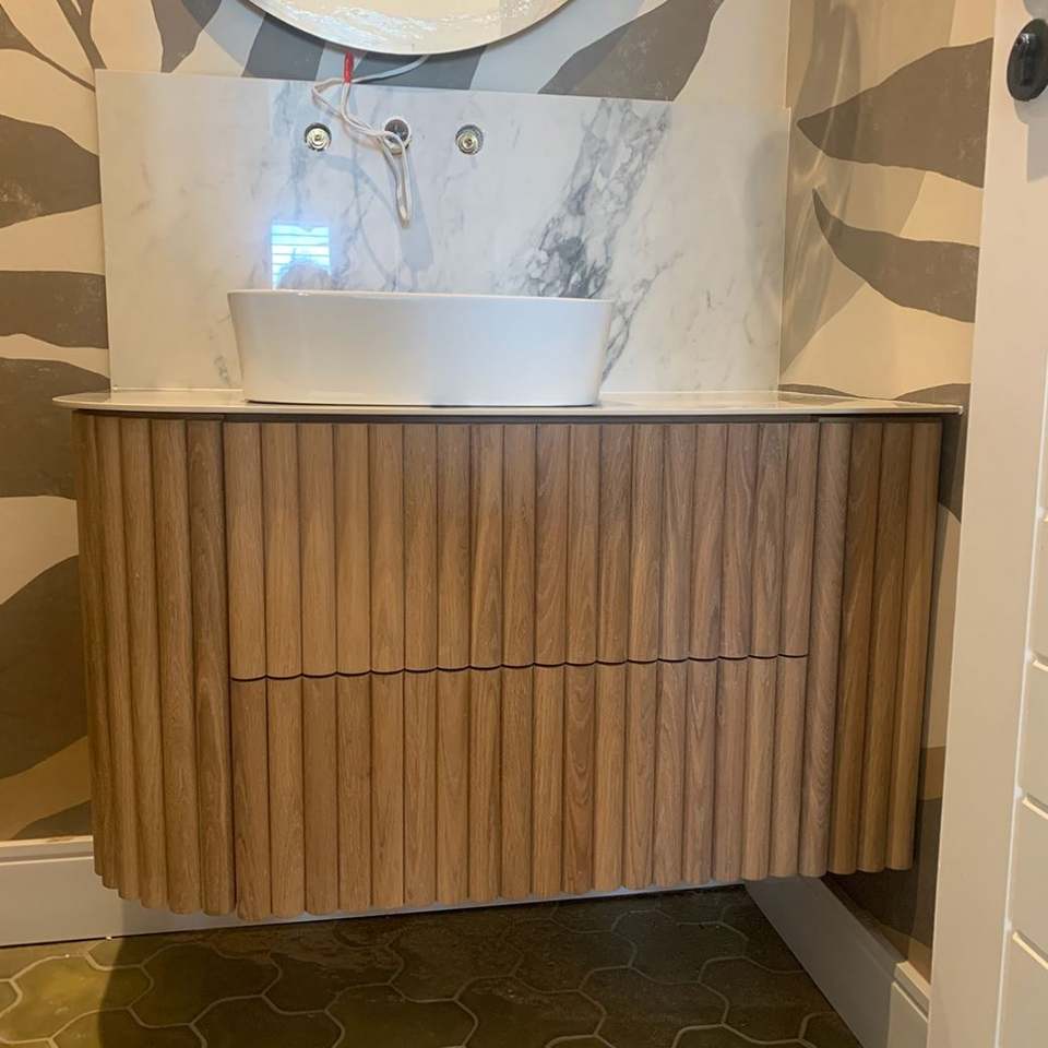 Mueble de Baño de Madera Maciza con Diseño Moderno sin Marco, Gabinete de Tocador con Espejo LED de Pared, Cerámica, Ecológico, para Villa