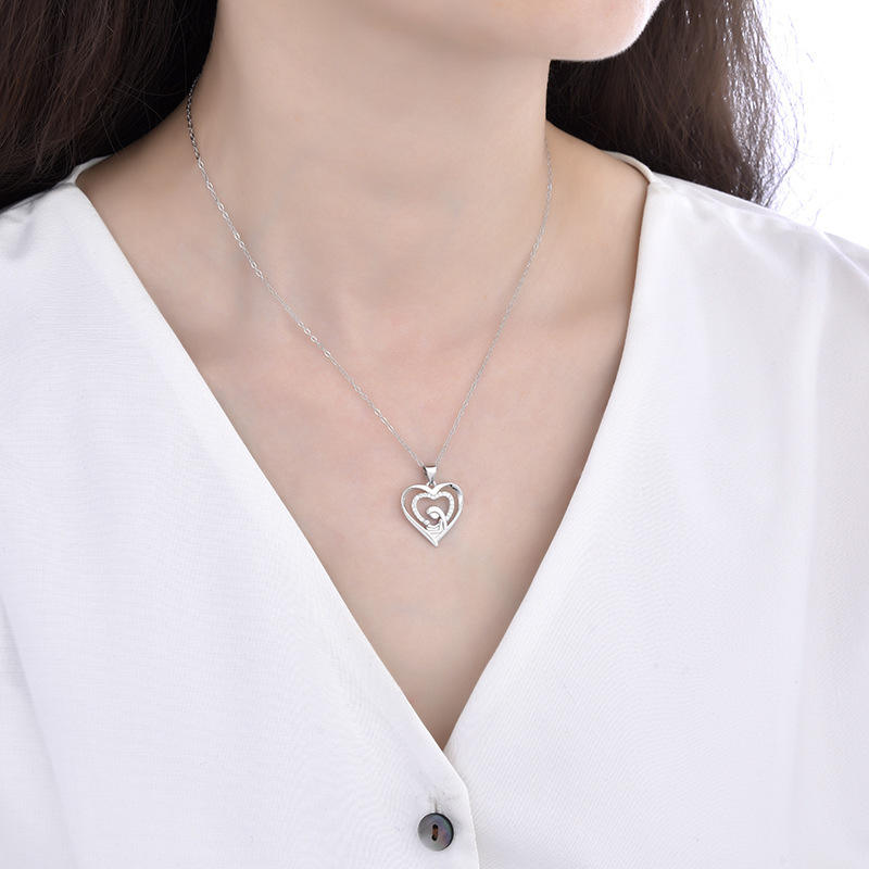 Collar con Forma de Corazón con Microincrustaciones de Circonia para Mamá, Regalo del Día de la Madre, Joyería, Collar de Doble Corazón Familiar con Mamá Abrazando a su Bebé