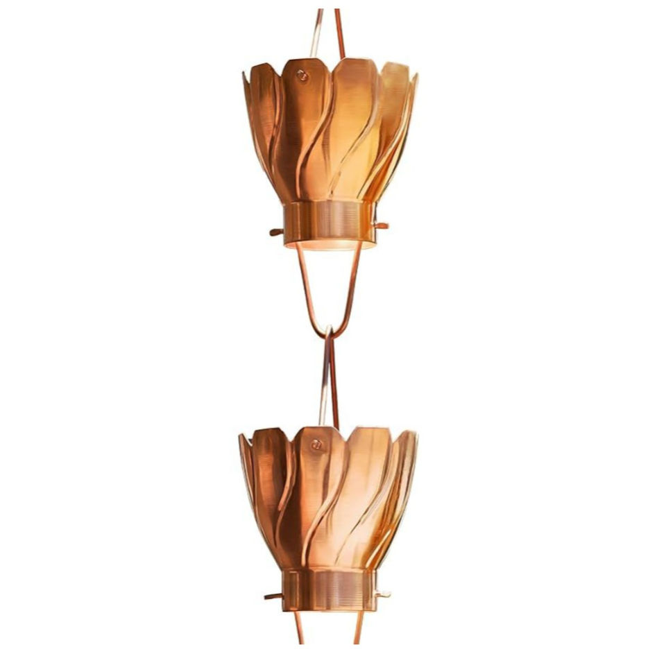 Cadena de Lluvia Decorativa Monarch Pure Copper Akira, Recolector de Agua de Lluvia para Canaletas, con Copas Grandes en Forma de Pétalos Florales para una Recolección Eficiente del Agua de Lluvia