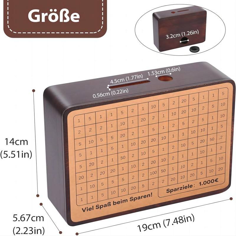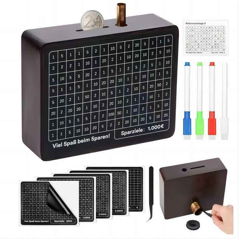 Hucha con mostrador Hucha con objetivos de ahorro, hucha de madera maciza reutilizable