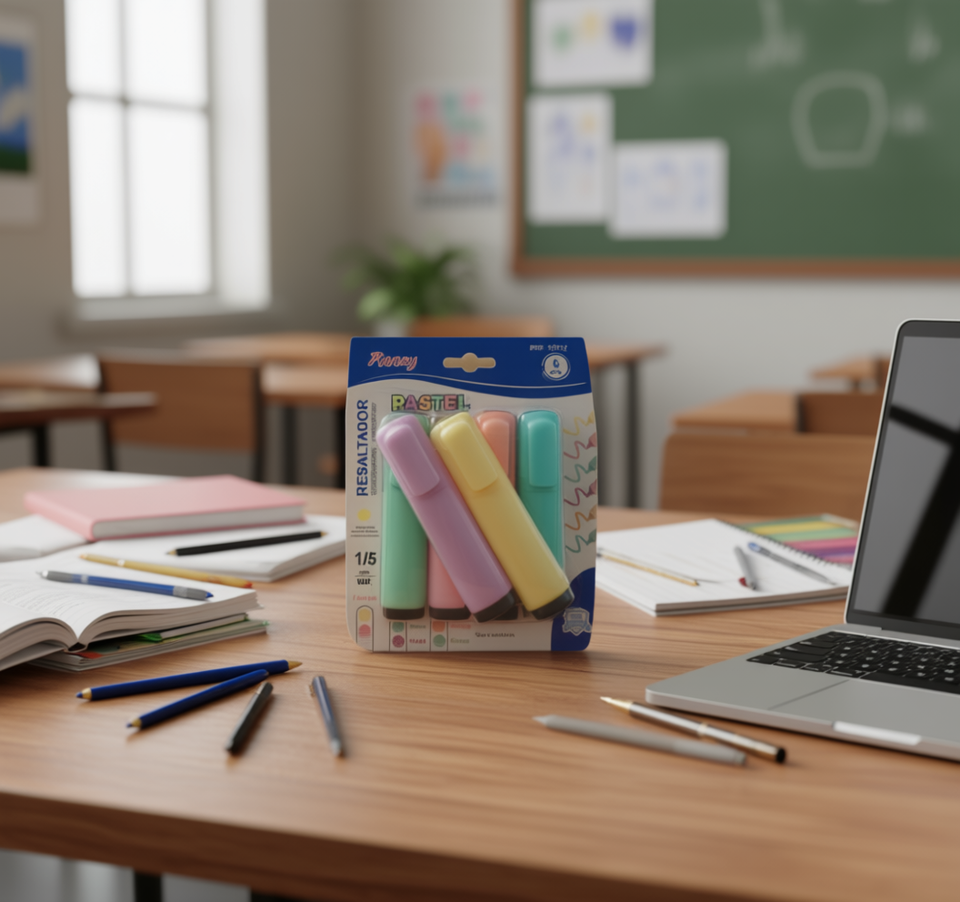 Marcadores de Texto, 6 Piezas, Punta Biselada, Colores Pastel, para Uso Escolar y de Oficina