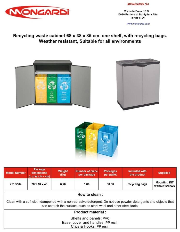 Cubo de Almacenamiento Rectangular de Plástico Resistente, Tipo Prensado, Color Gris Mongardi, Abierto por Arriba, Ecológico, para Uso Interior/Exterior, PVC PP