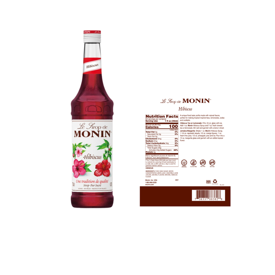 Monin Jarabe Hibiscus 700ML Botella Premium Popular Alta calidad Sabor puro Malasia Halal Distribuidor autorizado Fábrica directa