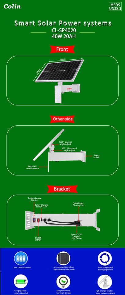 Panel Solar Mono de 40W para Comprador Personal, Soporte de Batería de Litio de 20Ah para Uso Doméstico, Fácil Instalación, Paquete Todo en Uno