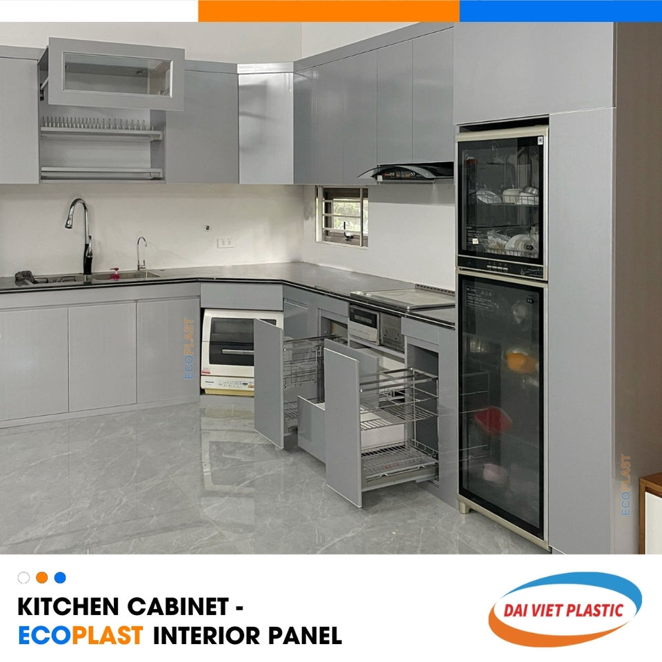 Gabinetes de cocina grises de estilo monocromático Panel interior de PVC No.1 Fábrica de fabricación de Vietnam