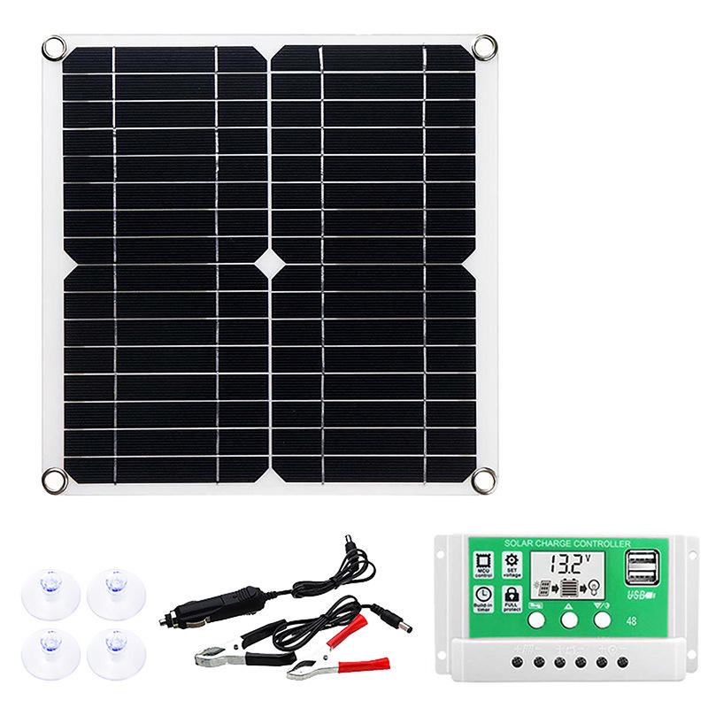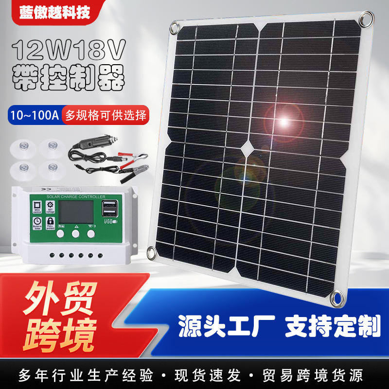Panel Solar Monocristalino de 12W, Kit de Controlador de 18V, Panel de Carga Fotovoltaico Portátil