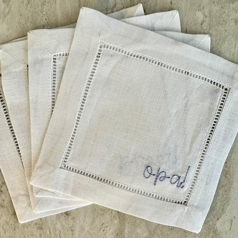 Posavasos Cuadrados de Lino 100% Personalizados con Monograma, Servilletas para Bebidas Bordadas con Dobladillo, Reutilizables, Estilo Japonés, para Fiestas de Cócteles