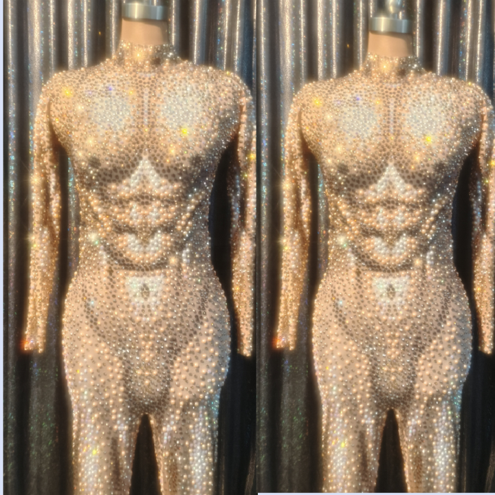 Monos Sexys Elásticos con Pedrería y Perlas de Spandex para Hombre, Ropa de Baile Exótica, Atuendo de Stripper, Mono para Actuaciones en Clubes y Escenarios