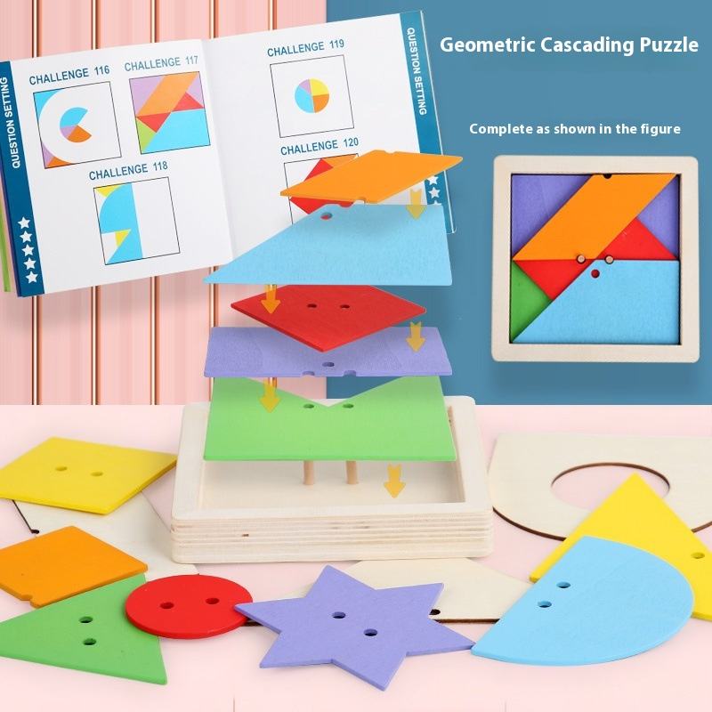 Rompecabezas de Geometría Apilable Montessori, Juguetes Tangram Coloridos, Rompecabezas Geométrico para Niños, Niñas y Niños Pequeños