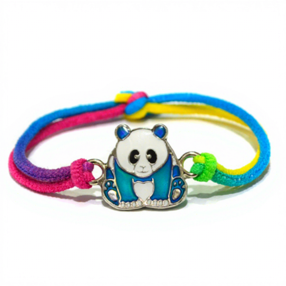 Pulsera Elástica con Dije de Panda que Cambia de Color, Cordón Tie Dye, Sin Níquel, Chapada en Rodio, para Niños