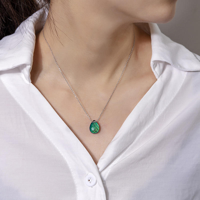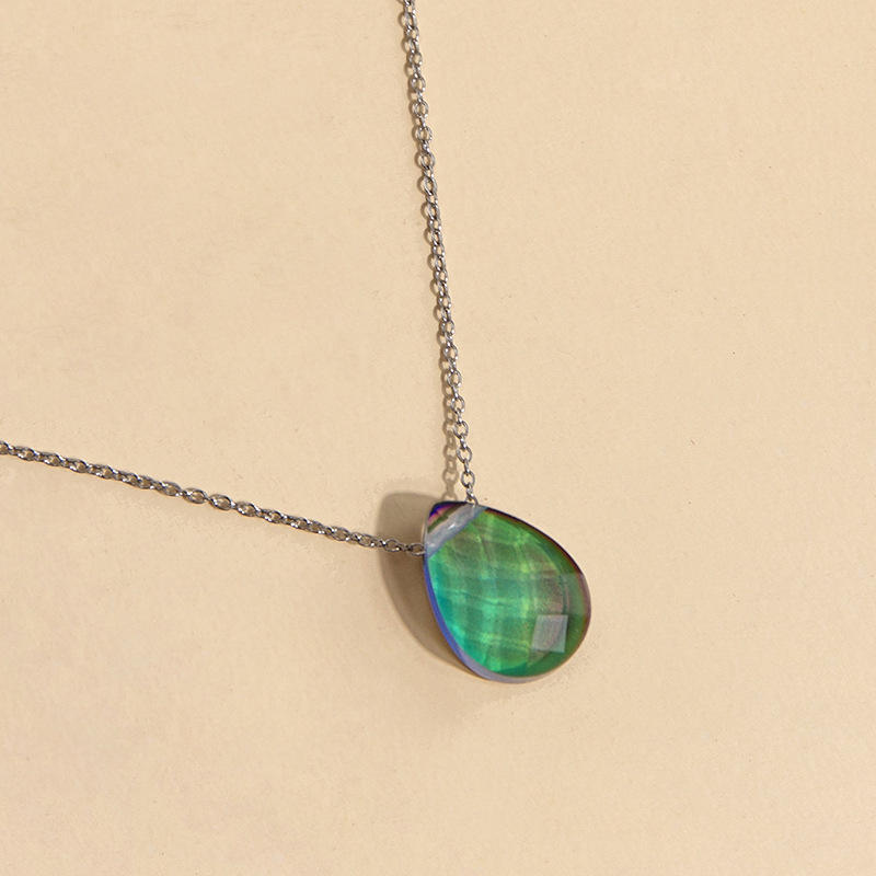 Estado de ánimo Collar Cambio de color Emoción Sensación Control de temperatura Gota de agua Colgante Collares de cadena de acero inoxidable