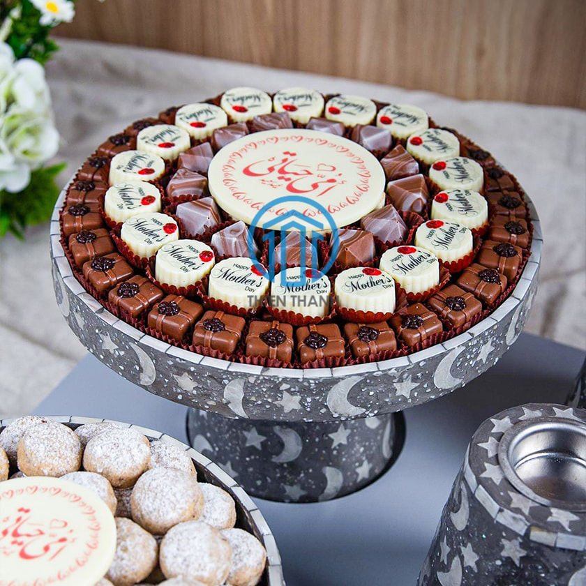 Patrón de Luna y estrella maravilloso para Ramadán Eid Chocolate decoración árabe Ramadán Eid madre de perla bandeja para servir con incrustaciones