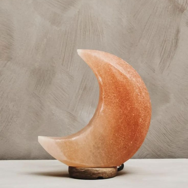 Lámpara de Sal del Himalaya en Forma de Luna, Estilo Feng Shui, Tallada en Roca de Cristal Rosa Natural, Iluminación Relajante, Propiedades Desintoxicantes