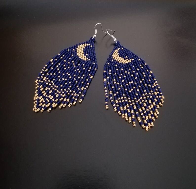 Pendientes de cuentas de noche de luna Pendientes de cuentas Pendientes de gota Pendientes bohemios Pendientes de flecos Pendientes de cuentas de noche