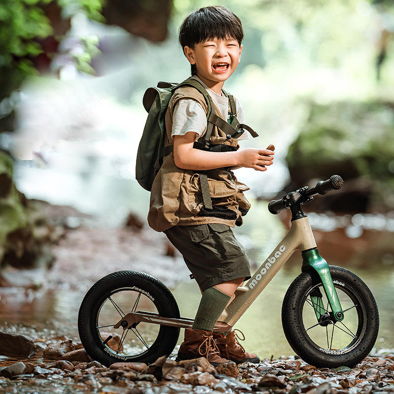 Bicicleta de equilibrio Moonbac para niños, 12 pulgadas, cuadro de aleación de magnesio, sin pedales, para niños y niñas, para paseos al aire libre