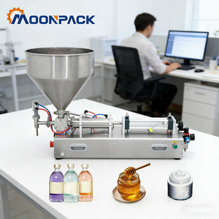 Máquina de Llenado Semiautomática Moonpack G1WGD 10-100ml para Botellas, Bebidas, Alimentos, Miel, Crema, Crema de Manos, Mermelada