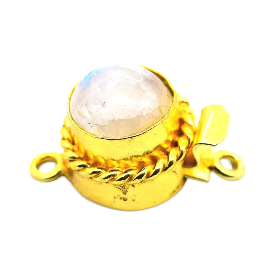 Piedra preciosa lunar 1 hebra 2 hebras y 3 hebras cierre de caja redonda 18K chapado en oro 24X19X10MM Cierre de fabricación de joyas B619