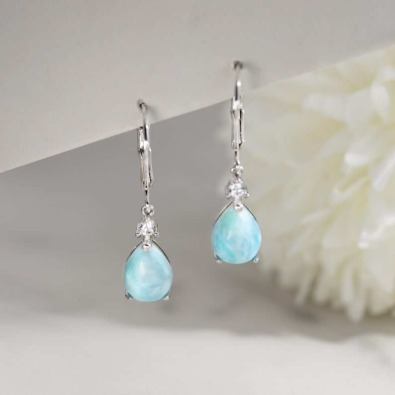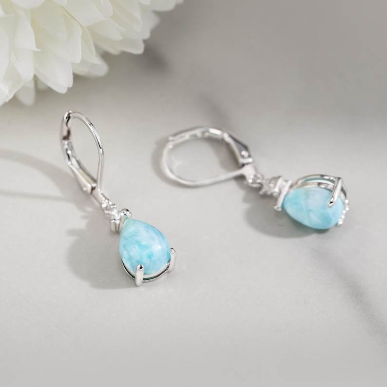 Palabra clave:Pendientes de botón de Larimar con piedra lunar y joyería de gema colgante brillante.