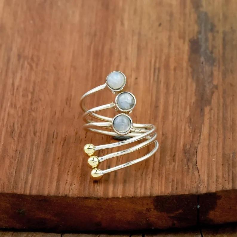 Nombre:Anillo de tres bandas con piedra lunar