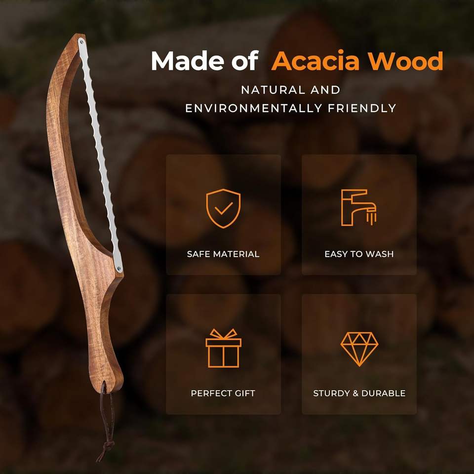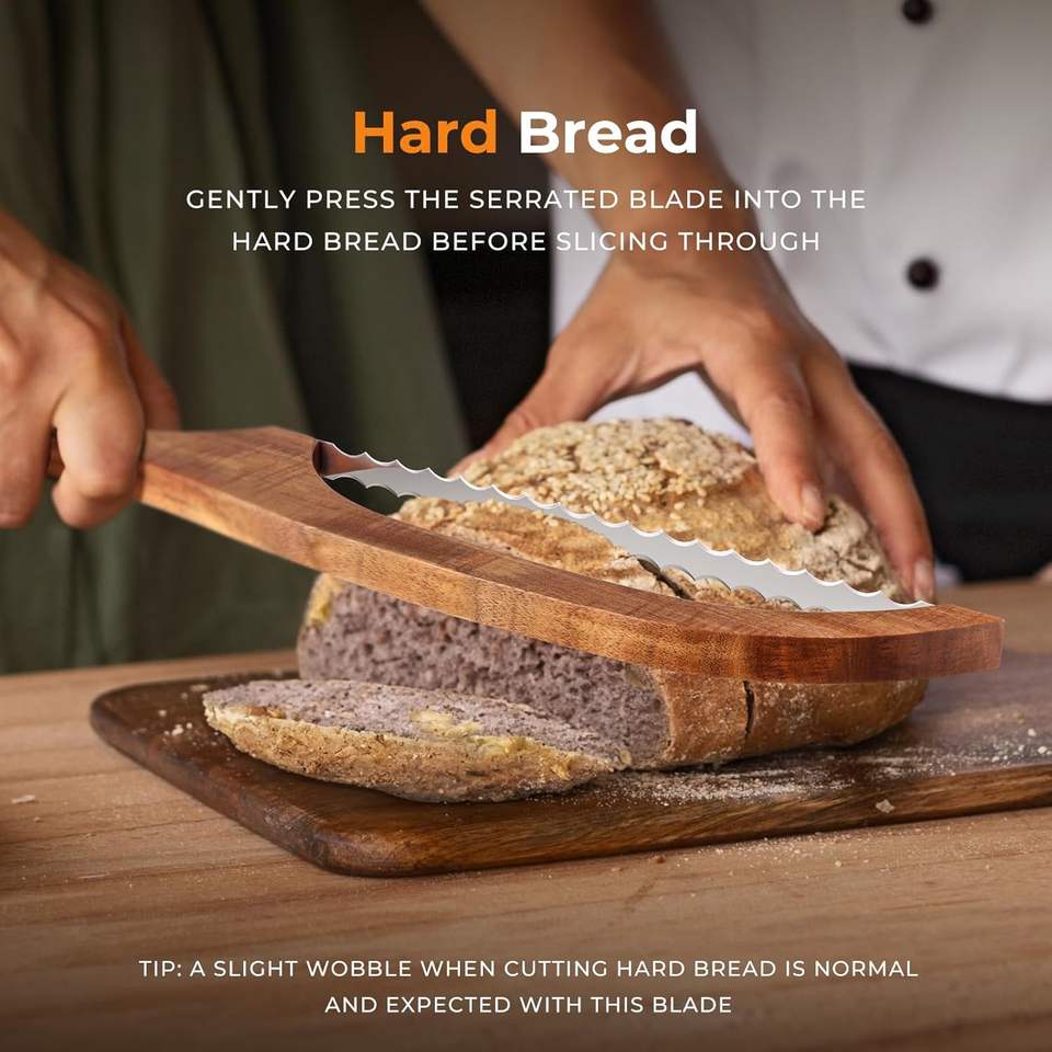 Juego de Cuchillos para Pan de Acero Inoxidable con Doble Filo Dentado Mooues de 15.7 Pulgadas con Mango de Madera de Acacia para Bagels, Baguettes y Pan de Levadura Casero al Aire Libre
